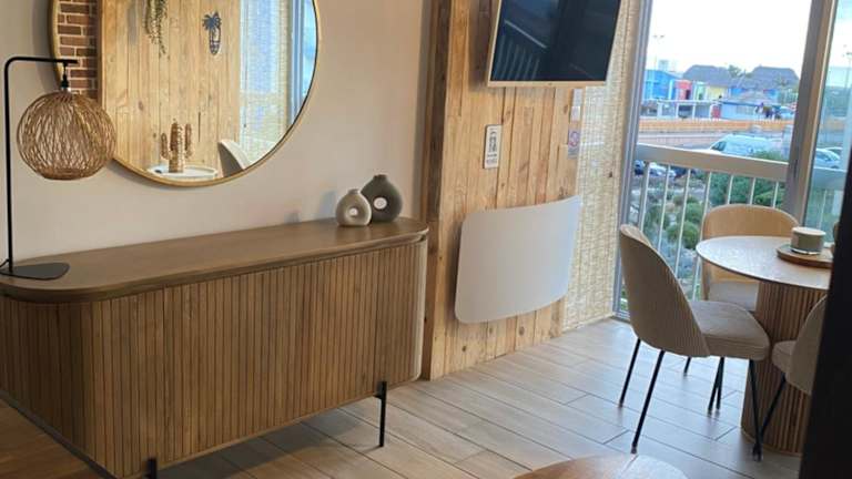 Die Beach Loft 4 pers ist eine Ferienwohnung, die über einen Balkon mit Meerblick verfügt. Zu den Annehmlichkeiten gehört kostenloser Privatparkplatz für die Gäste.