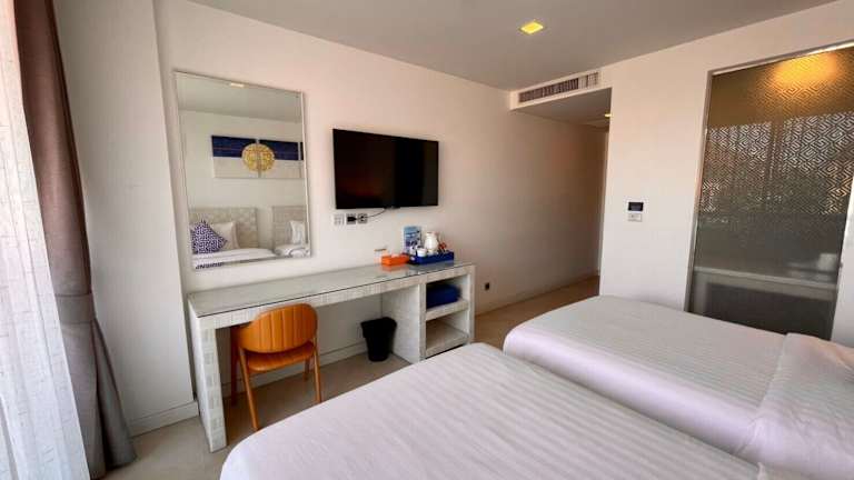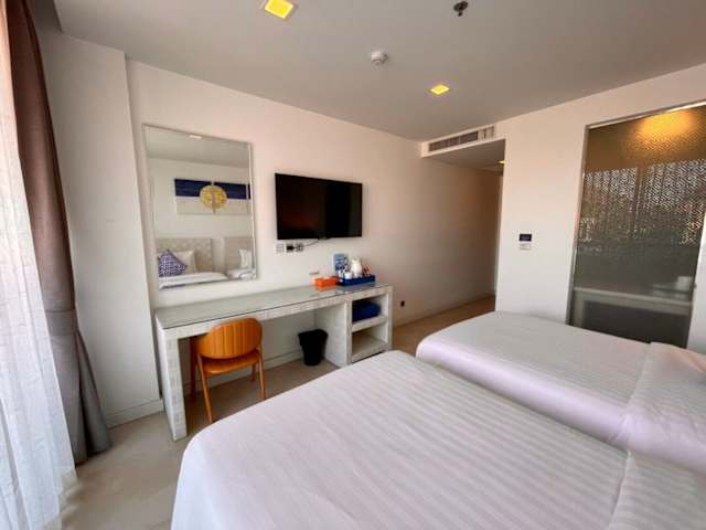 Das Beach Walk Boutique Resort in Bangsaen ist der perfekte Ort für einen erholsamen Urlaub. Mit einem Außenpool, einem Fitnesscenter und einem Garten bietet das Resort alles, was Sie für einen angenehmen Aufenthalt benötigen. Genießen Sie köstliche Speisen im hoteleigenen Restaurant und entspannen Sie in der Bar. Die Zimmer sind komfortabel und klimatisiert, einige bieten sogar einen herrlichen Blick auf das Meer. Starten Sie jeden Tag mit einem köstlichen Frühstück und nutzen Sie die zahlreichen Freizeitangebote wie den Whirlpool und den Kinderspielplatz. Entdecken Sie die Umgebung und besuchen Sie den Golfclub Crystal Bay oder den internationalen Golfclub Bangpra. Der Flughafen Bangkok-Suvarnabhumi ist ebenfalls leicht erreichbar.