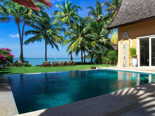 Die Beachfront 5-bedroom Villa bietet einen eigenen Strandbereich, in dem die Gäste die Sonne und das Meer in vollen Zügen genießen können. Der Garten und die Terrasse laden zum Entspannen ein. In der Umgebung gibt es auch zahlreiche Möglichkeiten für Wassersportaktivitäten und Ausflüge in die Natur.