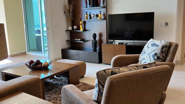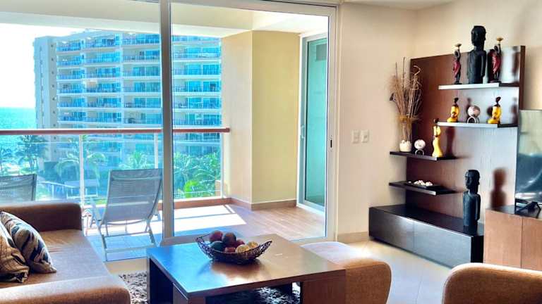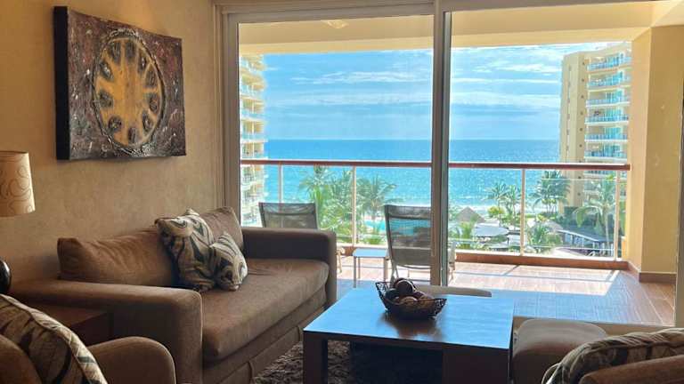 Das Beachfront Condo DelCanto Resort liegt in Nuevo Vallarta und bietet eine ideale Lage für einen erholsamen und dennoch abwechslungsreichen Urlaub. Das Resort befindet sich auf der 5. Etage des DelCanto Resorts, nur 33 km von Rincon de Guayabitos entfernt. In der Umgebung finden Sie zahlreiche Einkaufsmöglichkeiten, gehobene Küche und ein aufregendes Nachtleben. Mit dem Taxi oder dem Bus, die direkt vor dem Komplex verfügbar sind, erreichen Sie bequem alle Attraktionen der Region.