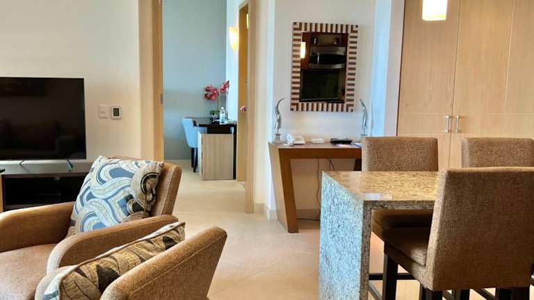 Die Unterkünfte im Beachfront Condo DelCanto Resort sind exquisit eingerichtet und bieten maßgefertigte Möbel. Jedes Zimmer verfügt über Zugang zu einer großzügigen Terrasse mit herrlichem Blick auf die Bucht von Banderas. Das Resort bietet Weltklasse-Annehmlichkeiten wie mehrere Pools, darunter ein beheizter Infinity-Pool am Meer, der direkt neben dem eigenen Strand liegt. Entspannen Sie an der Swim-up-Bar oder genießen Sie eine Mahlzeit im Restaurant unter dem großen Palapa. Die farbenfrohe Landschaft, Kokospalmen, Teiche, Minigolf und das moderne Fitnesscenter mit hochmodernen Geräten sorgen für einen angenehmen Aufenthalt.