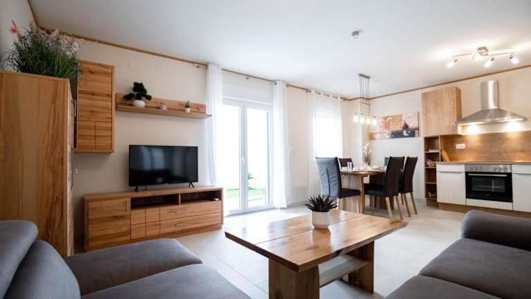Die Villa ist mit zwei Schlafzimmern, einem Wohnzimmer und einer voll ausgestatteten Küche ausgestattet. Die Küche umfasst einen Kühlschrank und eine Kaffeemaschine. Es gibt zwei Badezimmer mit Badewanne oder Dusche und Haartrockner. Handtücher und Bettwäsche werden bereitgestellt. Zu den weiteren Einrichtungen zählen schallisolierte Zimmer, eine Sonnenterrasse und Gartenmöbel.