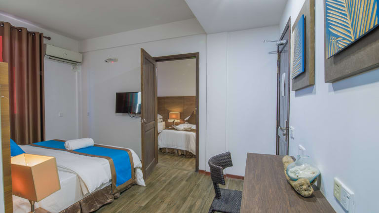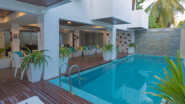 Situated in the heart of Maafushi Island in Maldives, about a 30 minutes speedboat ride from Male' International Airport, Beachwood Hotel & Spa is ideal for holiday makers who like to experience the true Maldives experience with a reasonable budget. With 20 stylishly furnished rooms with modern amenities, we best suit for families, couples, divers, explorers, study groups, university students, anniversary celebrations, honeymooners fishing adventurers and many more interests. With a swimming pool, an in-house restaurant, Rooftop Juice Bar, A spa and an affiliated gym, we make sure our guest needs are fulfilled. Daily tours to nearby resorts, local islands and sandbanks are organized for those who are more active. Fishing trips, snorkeling trips, dolphin watching and turtle watching trips are a passion for those who like to experience the Maldives.