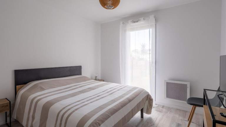 Beau T2 Neuf avec Jardinet, Parking et WIFI à Mimizan - FR-1-50-153 bietet eine moderne Ferienwohnung mit einer Terrasse. Die Unterkunft ist rauchfrei und gestaltet, um den Bedürfnissen von Gästen gerecht zu werden, die eine entspannte und komfortable Aufenthaltserfahrung suchen. Es stehen ein kostenloser Privatparkplatz und kostenfreies WLAN zur Verfügung.