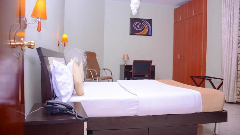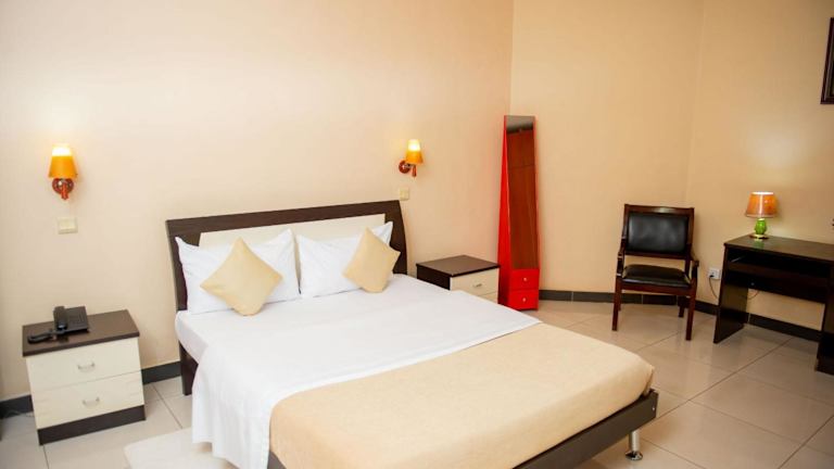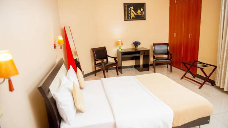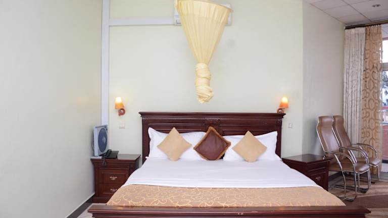 Das Beausejour Hotel in Kigali, Rwanda, ist ein idealer Ort für einen erholsamen Aufenthalt. Das Hotel bietet ein Spa- und Wellnesscenter sowie eine Terrasse, auf der Sie die Aussicht genießen können. Die Bar des Hotels lädt zum Entspannen bei einem Getränk ein. Die Zimmer sind komfortabel eingerichtet und verfügen über ein eigenes Bad. Ein kontinentales Frühstück wird täglich serviert und im hoteleigenen Restaurant können Sie weitere Mahlzeiten genießen. Das freundliche Personal steht Ihnen rund um die Uhr zur Verfügung und hilft Ihnen gerne bei allen Anfragen. Der internationale Flughafen Kigali ist nur 1,6 km entfernt, und auf Anfrage bietet das Hotel einen Flughafentransfer an.