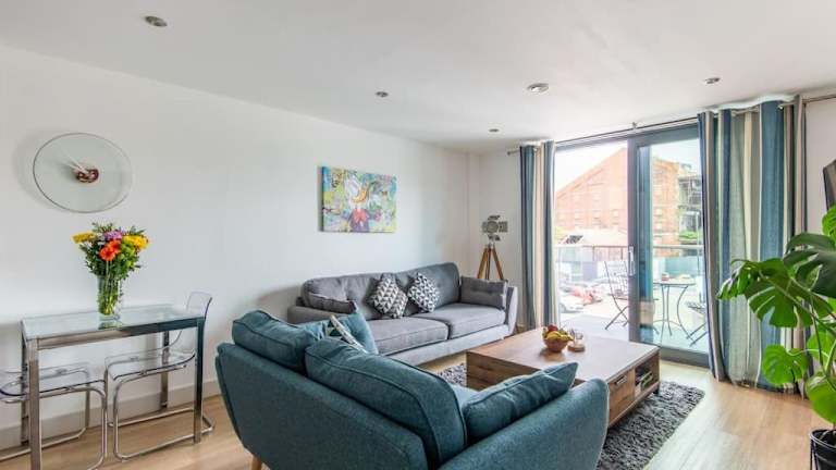 Das Beautiful 1 Bedroom Apartment with parking in Gloucester Docks bietet Übernachtungsmöglichkeiten in einer gut ausgestatteten Ferienwohnung mit Balkon und kostenlosem WLAN. Die Unterkunft ist ideal für Gäste, die eine komfortable und stilvolle Atmosphäre suchen.