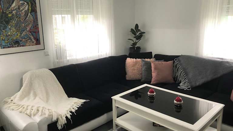 Das Ferienhaus ist klimatisiert und umfasst zwei separate Schlafzimmer sowie ein Badezimmer mit einem Haartrockner. Ein Sitzbereich und ein Wohnzimmer sind ebenfalls vorhanden. Handtücher und Bettwäsche werden bereitgestellt.