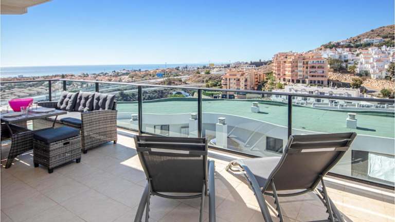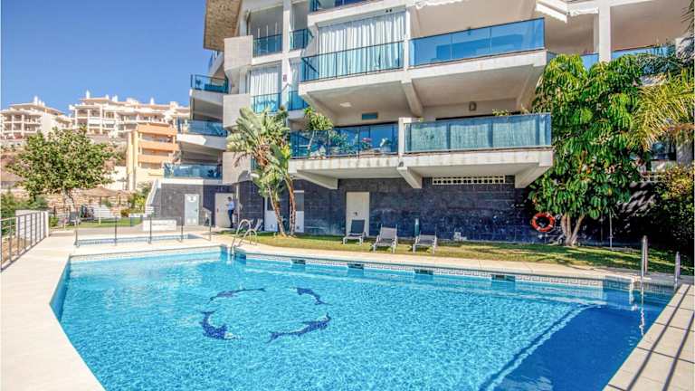 Beautiful Apartment In Mijas Costa bietet einen Außenpool mit Meerblick und besteht aus einer klimatisierten Ferienwohnung mit zwei Schlafzimmern, einem Wohnzimmer und einer voll ausgestatteten Küche. Die Unterkunft stellt kostenlose Parkmöglichkeiten und WLAN zur Verfügung.