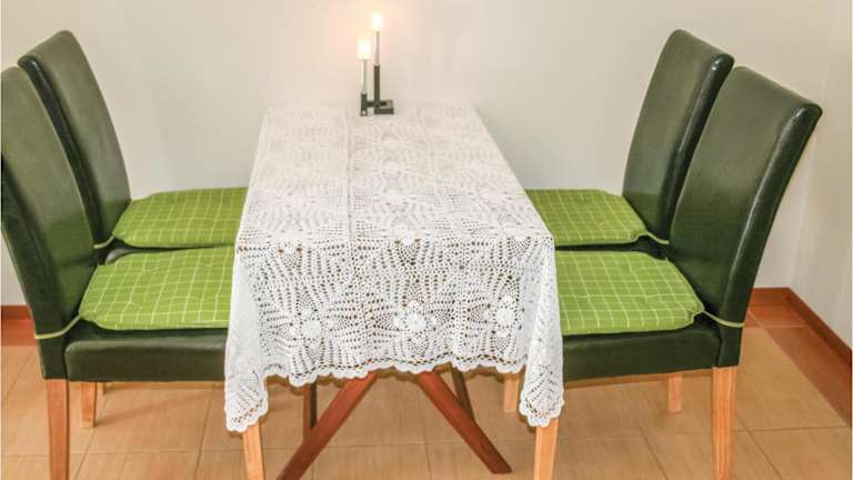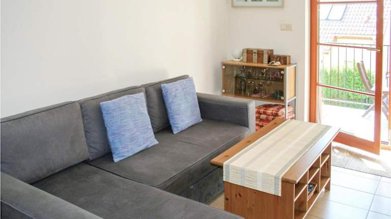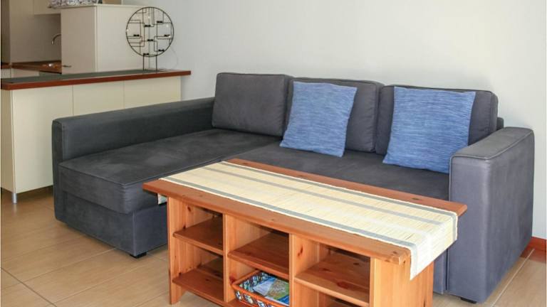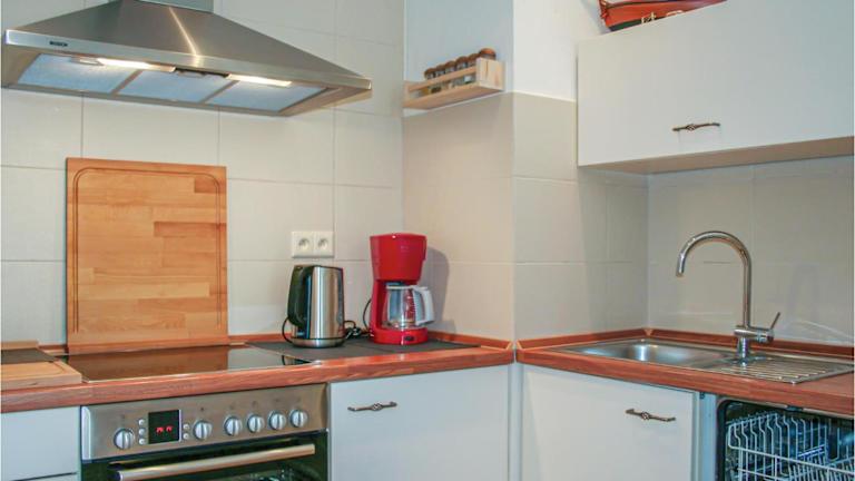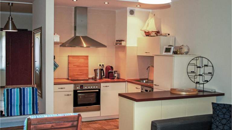 Die Ferienwohnung umfasst ein Wohnzimmer, einen Essbereich, ein Schlafzimmer und ein Badezimmer mit Dusche. Zur Ausstattung gehört eine Küchenzeile mit Kühlschrank, Geschirrspüler und Ofen. Zudem sind Handtücher und Bettwäsche vorhanden. Es ist ein Blu-ray-Player verfügbar.