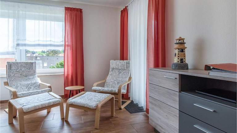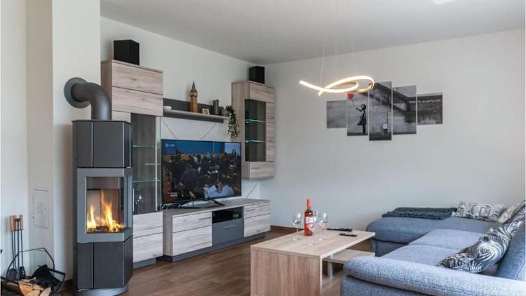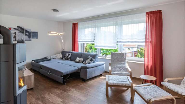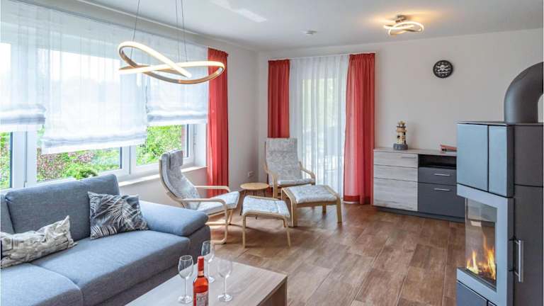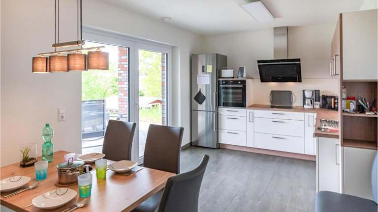 Das Ferienhaus verfügt über zwei Schlafzimmer, ein Wohnzimmer sowie eine voll ausgestattete Küche mit Kühlschrank und Geschirrspüler. Zudem steht ein Fernseher zur Verfügung.