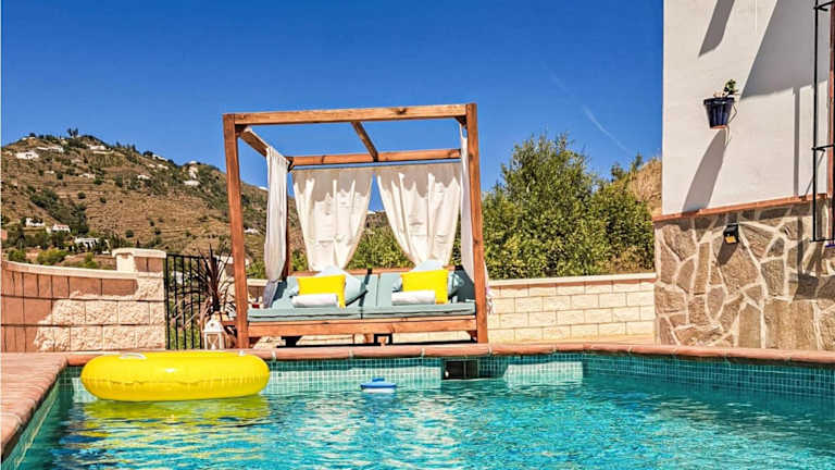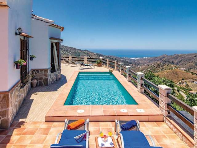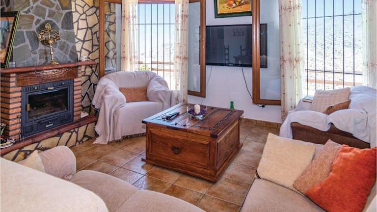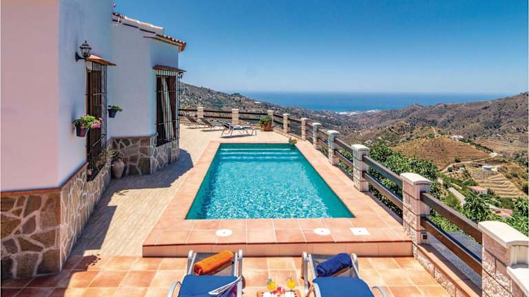 Verbringen Sie einen fantastischen Urlaub im Awesome Home in Sayalonga. Dieses Ferienhaus mit eigenem Pool und Meerblick bietet Ihnen alles, was Sie für einen erholsamen Aufenthalt benötigen. Mit 3 Schlafzimmern, einer voll ausgestatteten Küche und 2 Badezimmern bietet das klimatisierte Ferienhaus genügend Platz für die ganze Familie. Genießen Sie die wunderschöne Berglandschaft und profitieren Sie von kostenfreiem WLAN und Privatparkplätzen. Der Flughafen Málaga ist nur 69 km entfernt.