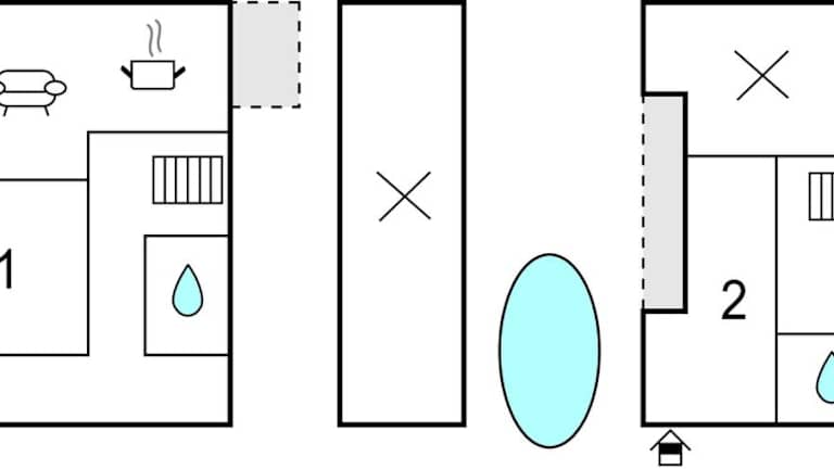 Das Ferienhaus umfasst 2 Schlafzimmer, ein Wohnzimmer sowie 2 Badezimmer, die mit Dusche und Haartrockner ausgestattet sind.