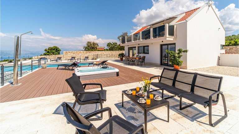Beautiful Home In Splitska- Supetar ist ein Ferienhaus, das eine Vielzahl an Annehmlichkeiten bietet, darunter einen Balkon mit Blick auf das Meer und die Berge sowie einen eigenen Außenpool. Die Unterkunft ist klimatisiert und umfasst 3 Schlafzimmer, ein Wohnzimmer, eine voll ausgestattete Küche, 2 Badezimmer, ein Spa-Center und einen Whirlpool.