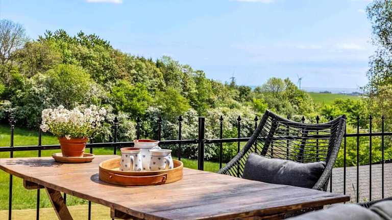 Das Ferienhaus verfügt über fünf Schlafzimmer und ein Wohnzimmer mit einem Flachbild-TV und einem Blu-ray-Player. Die gut ausgestattete Küche ist mit einem Kühlschrank und einem Geschirrspüler ausgestattet. Zudem sind Balkone vorhanden, die den Gästen einen Blick aufs Meer bieten.