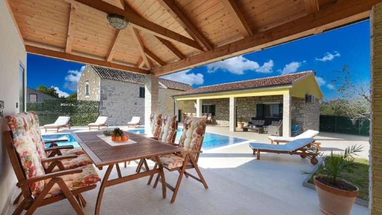 Die Beautiful Villa Petra ist eine Unterkunft mit einem eigenen Pool, einem Garten und einem kostenlosen Privatparkplatz. Die Villa ist klimatisiert und bietet kostenloses WLAN.