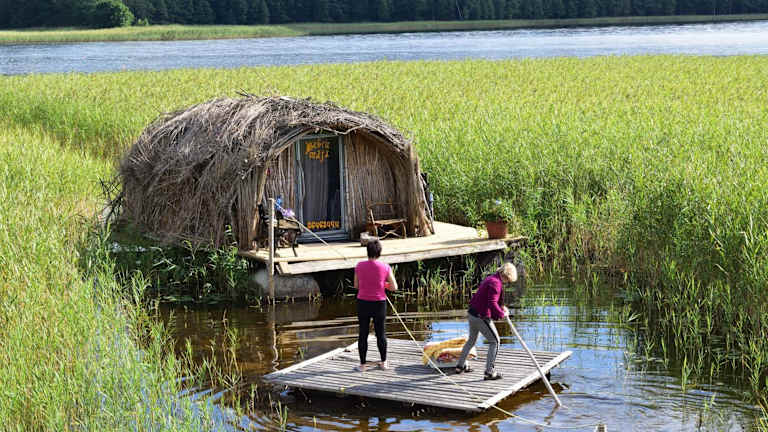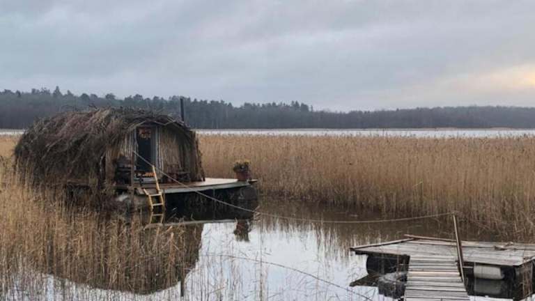 Das Bebru māja - Beaver house bietet komfortable Unterkünfte in einem Boot. Es verfügt über ein Schlafzimmer, ein Badezimmer mit Dusche und einen gemütlichen Sitzbereich. Von Ihrem Zimmer aus haben Sie einen herrlichen Blick auf den See.