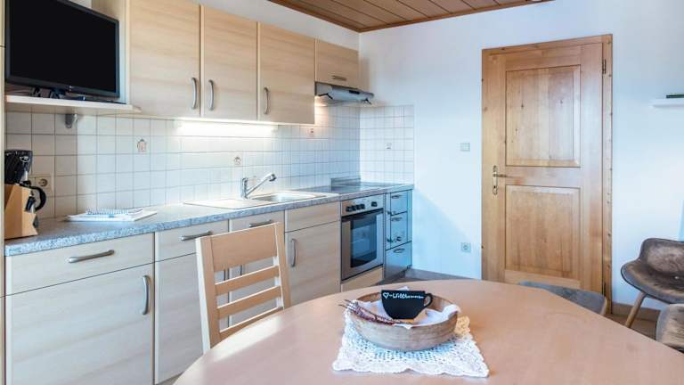 Die Ferienwohnung verfügt über ein Schlafzimmer, ein Badezimmer sowie eine voll ausgestattete Küche. Weiterhin sind Bettwäsche und Handtücher vorhanden. Zu den Annehmlichkeiten gehören ein TV mit Satellitenkanälen und ein Balkon mit Blick auf die Berge.