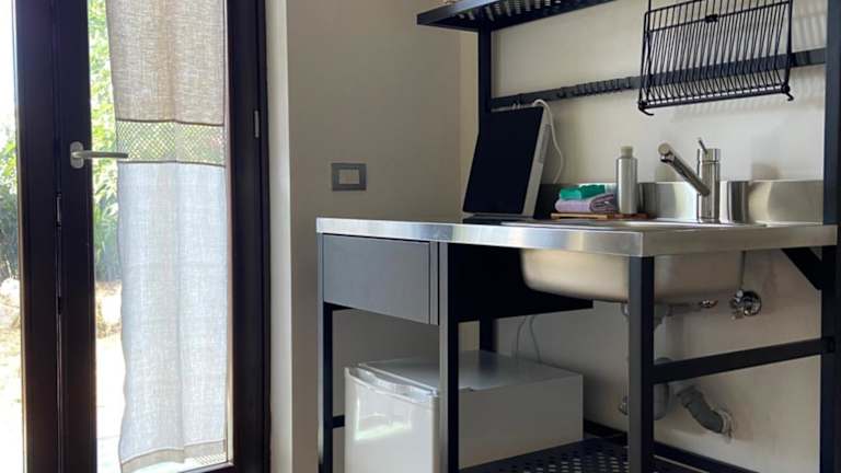 In der Küche der Unterkunft sind ein Kühlschrank, eine Minibar sowie eine Herdplatte vorhanden.