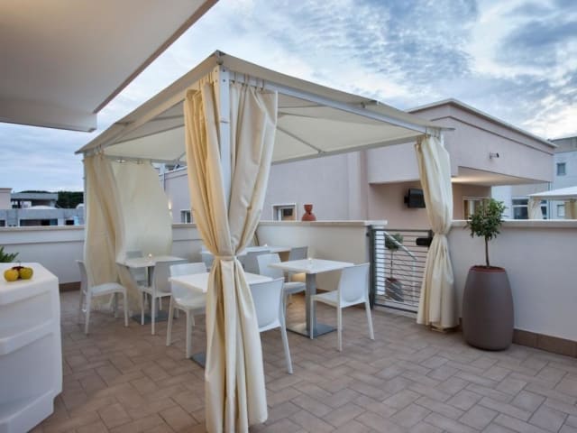 Das Hotel Bed & Breakfast Aria di Mare in Gallipoli ist die perfekte Wahl für Urlauber, die in der Nähe des Strandes und in einer freundlichen Umgebung untergebracht sein möchten. Mit seinen vier Zimmern, die mit einem Aufzug erreichbar sind, bietet das Hotel den Gästen einen angenehmen Aufenthalt mit freundlichem Personal an der Rezeption. Die Zimmer sind mit Klimaanlage, Minibar, Schreibtisch, Telefon und WLAN ausgestattet und bieten ein angenehmes Raumklima. Morgens können Sie ein leckeres Frühstück vom Buffet genießen und auf der Terrasse das schöne Wetter genießen.