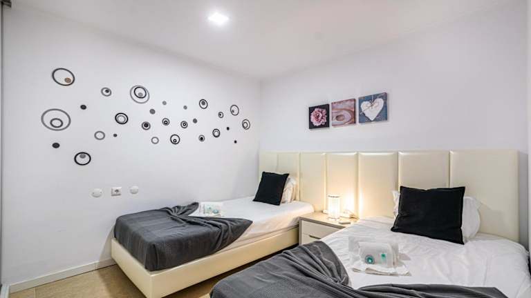 Die Ferienwohnung umfasst 2 Schlafzimmer und eine Küche, die mit einem Kühlschrank und einem Geschirrspüler ausgestattet ist. Des Weiteren befinden sich 2 Badezimmer mit Dusche, Haartrockner und Waschmaschine in der Unterkunft. Handtücher und Bettwäsche sind ebenfalls verfügbar.