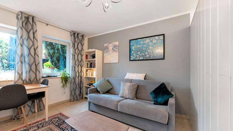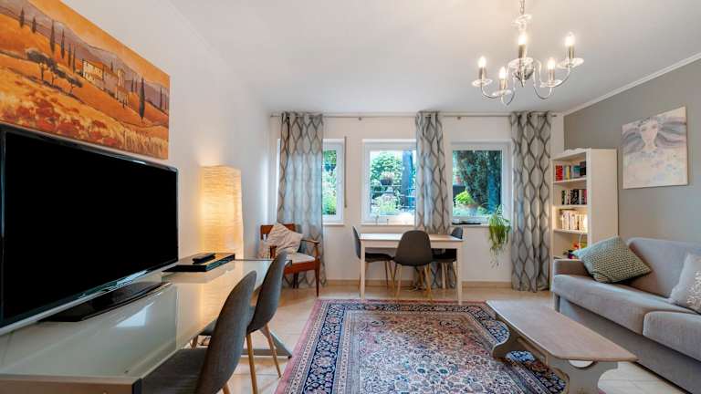 Die Ferienwohnung besteht aus einem Schlafzimmer, einem Wohnzimmer und einem Badezimmer mit Badewanne und kostenlosen Pflegeprodukten. Handtücher und Bettwäsche werden bereitgestellt. Die Ausstattung umfasst zudem einen Wasserkocher und Gartenmöbel.