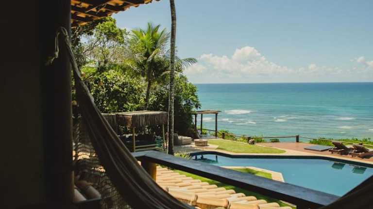 Das Hotel Pousada Beijo do Vento in Arraial da Ajuda ist der perfekte Ort für einen entspannten Urlaub mit atemberaubendem Meerblick. Genießen Sie den Außenpool mit Blick auf den Südatlantik und lassen Sie sich von den komfortablen Zimmern mit Balkon und Hängematte verwöhnen. Der weitläufige Garten lädt zu Spaziergängen ein und von der Poolterrasse aus können Sie den Sonnenaufgang bewundern. Das Restaurant bietet leckere Speisen und in der TV-Lounge können Sie sich mit englischsprachigen Filmen unterhalten lassen. Die zentrale Lage ermöglicht es Ihnen, bequem Bars und Restaurants im Zentrum von Arraial d'Ajuda-Cente zu erreichen.