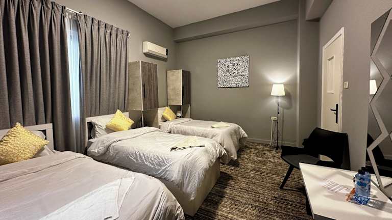 Das Hotel Beit Ahlan befindet sich in Amman, weniger als 1 km von der Regenbogenstraße und 1,8 km von der al-Husseini-Moschee entfernt. Der Herkulestempel und die römische Konrinthersäule sind 2,5 km weit weg, während das Islamic Scientific College in einer Entfernung von 1,2 km liegt. Der Flughafen Queen Alia ist 33 km entfernt.