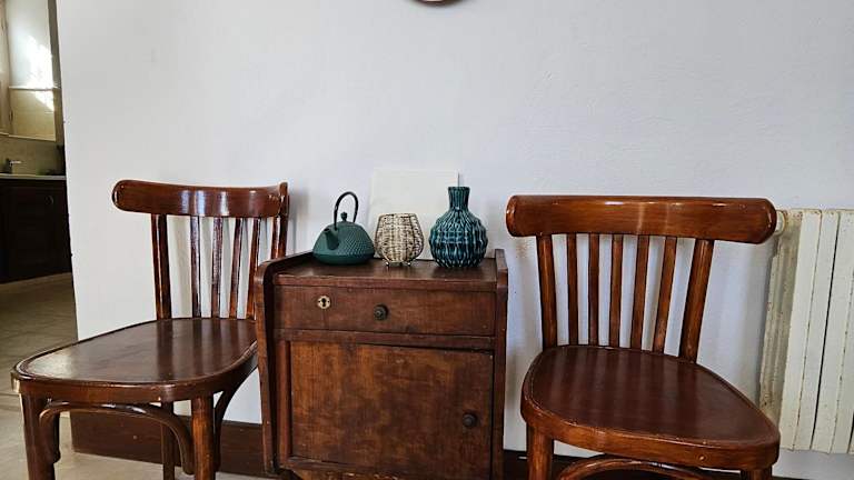 Das Ferienhaus umfasst zwei Schlafzimmer, ein Wohnzimmer sowie eine voll ausgestattete Küche mit Kühlschrank und Kaffeemaschine. Zu den Badezimmern gehören ein Bidet und eine Dusche. Bettwäsche und Handtücher werden zur Verfügung gestellt. Die Unterkunft ist klimatisiert und bietet Nichtraucherzimmer sowie Familienzimmer.