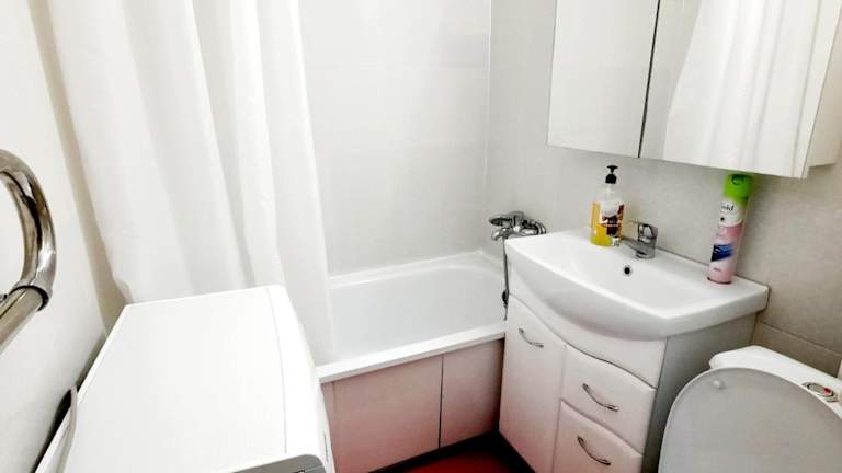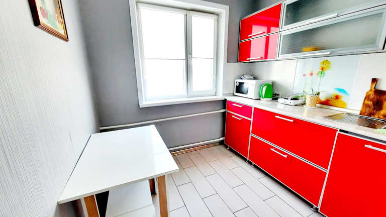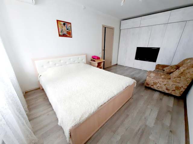 Die klimatisierte Wohnung im Hotel Бектурова 17 verfügt über ein gemütliches Schlafzimmer mit einem bequemen Bett. Das Wohnzimmer ist mit einem Flachbildfernseher ausgestattet, auf dem Sie Ihre Lieblingssendungen und Filme genießen können. Die voll ausgestattete Küche bietet Ihnen die Möglichkeit, Ihre eigenen Mahlzeiten zuzubereiten, wenn Sie dies wünschen. Ein Balkon bietet Ihnen eine schöne Aussicht und einen Ort zum Entspannen.