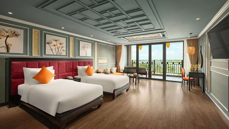 Das hoteleigene Marine Restaurant verwöhnt Sie mit einer Vielzahl von Gerichten aus der vietnamesischen und internationalen Küche. Genießen Sie das reichhaltige Buffetangebot und den wunderschönen Flussblick. Der Zimmerservice steht Ihnen rund um die Uhr zur Verfügung und verwöhnt Sie mit köstlichen Speisen in Ihrer Villa.