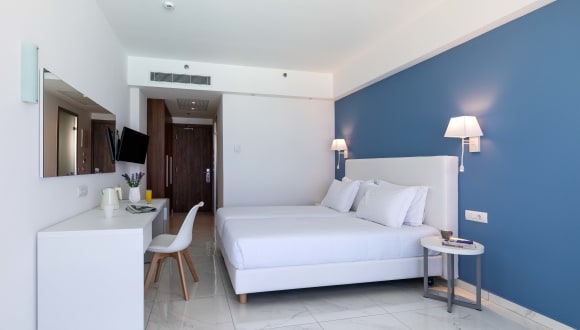 Das Belair Beach Hotel verfügt über 164 Zimmer, die sich auf 4 Etagen verteilen. Jedes Zimmer ist mit modernen Annehmlichkeiten wie Klimaanlage, Safe und Schreibtisch ausgestattet. Ein Kühlschrank, ein Minikühlschrank und eine Tee-/Kaffeemaschine stehen ebenfalls zur Verfügung. Von den Balkonen oder Terrassen der Zimmer aus können Sie einen herrlichen Meerblick genießen.