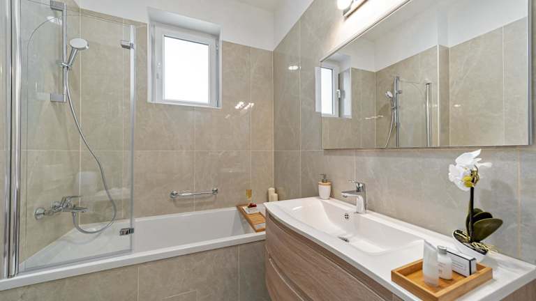 Die Ferienwohnung verfügt über drei Schlafzimmer, einen Flachbild-TV mit Kabelkanälen, eine gut ausgestattete Küche mit Kühlschrank und Geschirrspüler sowie drei Badezimmer mit Dusche. Handtücher und Bettwäsche werden bereitgestellt.