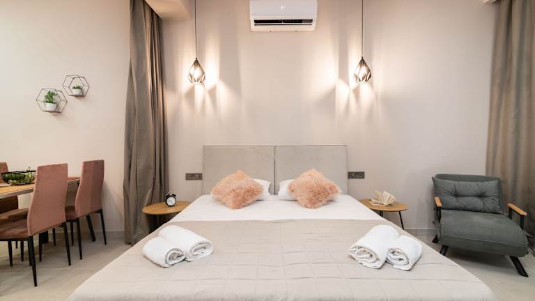 Bella Vacanza Studios bietet Übernachtungsmöglichkeiten mit einer Terrasse oder einem Balkon und gewährt Ausblick auf die Stadt. Die Unterkunft ist mit Klimaanlage ausgestattet und verfügt über kostenfreies WLAN. Ein Privatparkplatz ist ebenfalls vor Ort verfügbar. Die Unterkunft eignet sich sowohl für Erholungssuchende als auch für Reisende, die die Umgebung erkunden möchten.