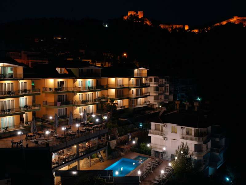 Das Hotel Bella Vista Apart Alanya befindet sich in einer erstklassigen Lage in Alanya, nur etwa 300 m vom Vorgebirge entfernt, das den Horizont der Stadt dominiert. Vom Hotel aus genießen Sie einen atemberaubenden Blick auf den Kleopatra-Strand. Die öffentlichen Verkehrsmittel sind in nur 5 Gehminuten erreichbar und das Stadtzentrum von Alanya ist in etwa 10 Minuten zu Fuß erreichbar. Die Umgebung bietet viele Einkaufsmöglichkeiten, Restaurants und Sehenswürdigkeiten wie die Höhlen von Damlatas und den Roten Turm. Der Flughafen Antalya ist etwa 135 km entfernt.