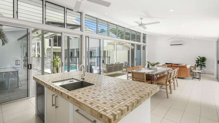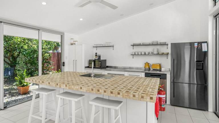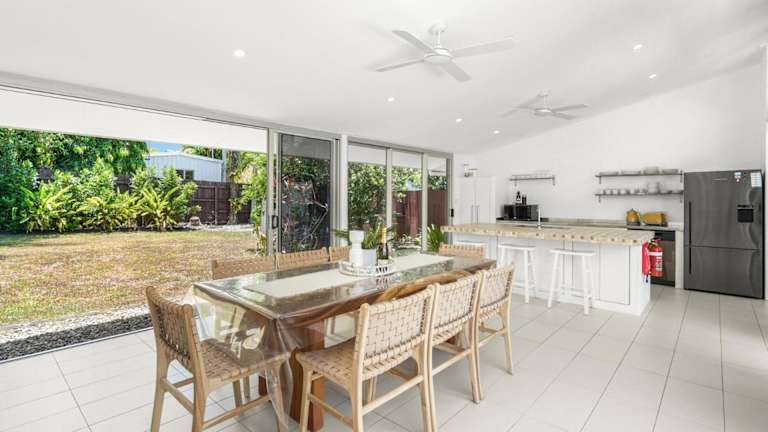 Das Belle Escapes - Villa Rosa in Trinity Beach ist eine ideale Unterkunft für einen erholsamen Urlaub in Strandnähe. Das Ferienhaus bietet geräumige Zimmer, kostenfreies WLAN und einen eigenen Pool. Genießen Sie den Außenpool und den Garten sowie die gut ausgestattete Küche und die Terrasse mit Blick auf den Garten. Der Strand und andere Sehenswürdigkeiten in der Umgebung sind leicht zu erreichen.
