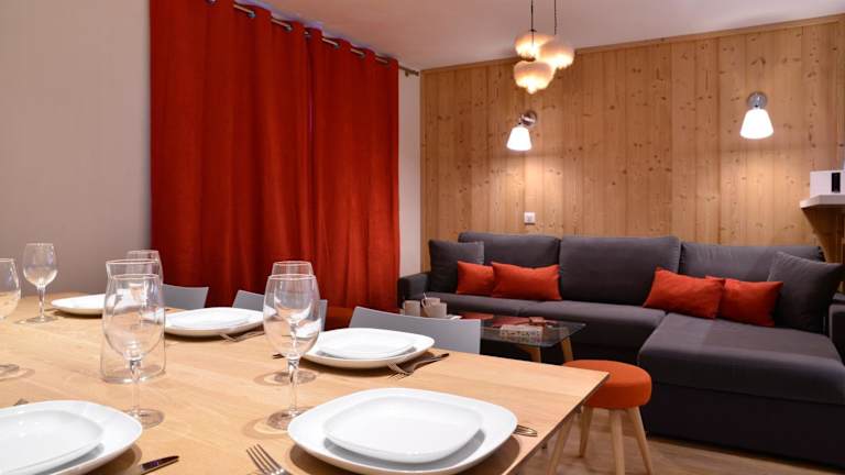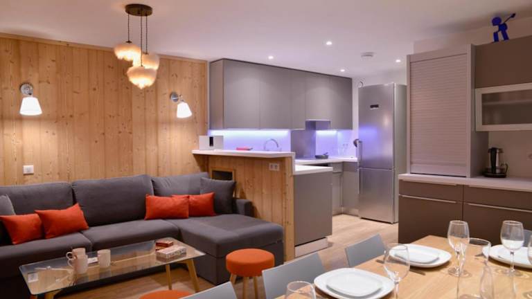 Das Apartment im Belle Plagne Premium ist komfortabel und modern eingerichtet. Es verfügt über eine voll ausgestattete Küche mit Kühlschrank, Backofen und Geschirrspüler. Das geräumige Wohnzimmer bietet einen gemütlichen Sitzbereich und einen separaten Essbereich. Insgesamt stehen Ihnen drei Schlafzimmer und zwei Badezimmer zur Verfügung. Zur Unterhaltung stehen Ihnen eine Spielkonsole, ein Flachbild-Sat-TV, eine Nintendo Wii und eine iPod-Dockingstation zur Verfügung.