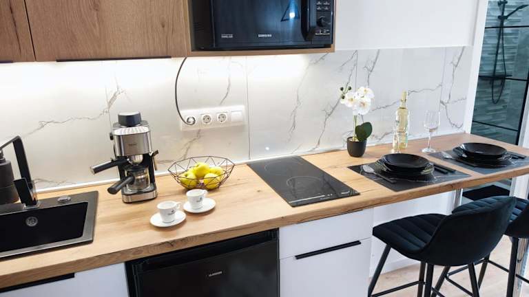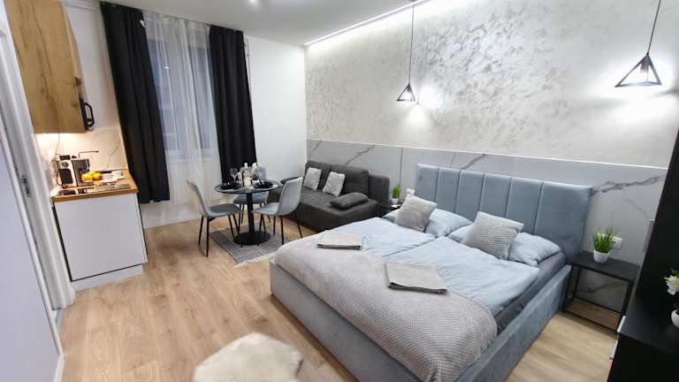 Das Belvárosi Lux Apartman bietet Selbstversorgungsmöglichkeiten in den gut ausgestatteten Küchen der Wohneinheiten. In der Nähe des Hotels finden Sie auch Restaurants und Cafés, in denen Sie lokale Spezialitäten und internationale Gerichte genießen können.