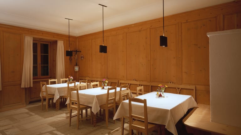 Das Frühstücksbuffet und das Abendessen werden im nahe gelegenen Partnerhotel Gasthof Grüner Baum serviert. Hier können Sie traditionelle Gerichte aus Südtirol genießen und in einer gemütlichen Atmosphäre entspannen.