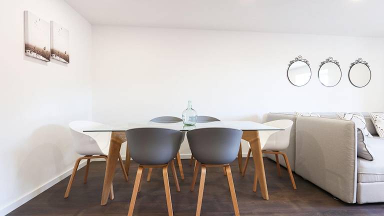 Die Ferienwohnung verfügt über eine Klimaanlage, zwei Schlafzimmer, ein Wohnzimmer und eine voll ausgestattete Küche mit Kühlschrank und Kaffeemaschine. Das Badezimmer ist mit einer Dusche und einem Haartrockner ausgestattet. Handtücher und Bettwäsche werden bereitgestellt.