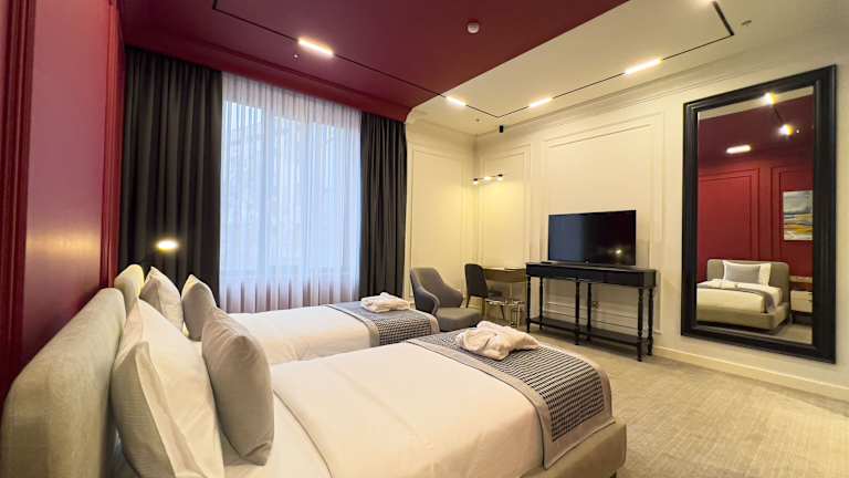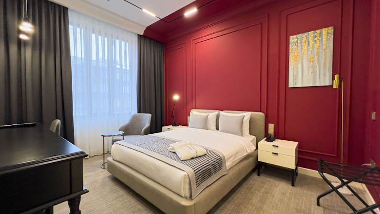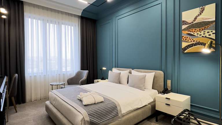 Die Zimmer im Bentley Hotel Tashkent sind mit Klimaanlage, einem Sitzbereich, einem Flachbild-TV mit Satellitenkanälen, einem Safe sowie einem eigenen Badezimmer ausgestattet. Die Ausstattung umfasst kostenlose Pflegeprodukte, einen Haartrockner sowie Bettwäsche und Handtücher.