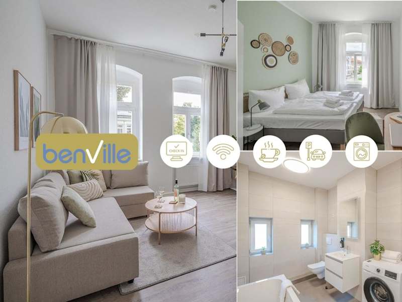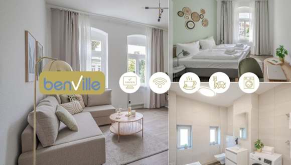 BENVILLE Meißen - Free Parking - Nespresso Kaffee - Stylisch ist eine Ferienwohnung mit Stadtblick, die eine moderne und stilvolle Atmosphäre bietet. Zu den Annehmlichkeiten gehören ein kostenloser Privatparkplatz, ein Geldautomat und kostenloses WLAN.