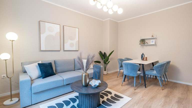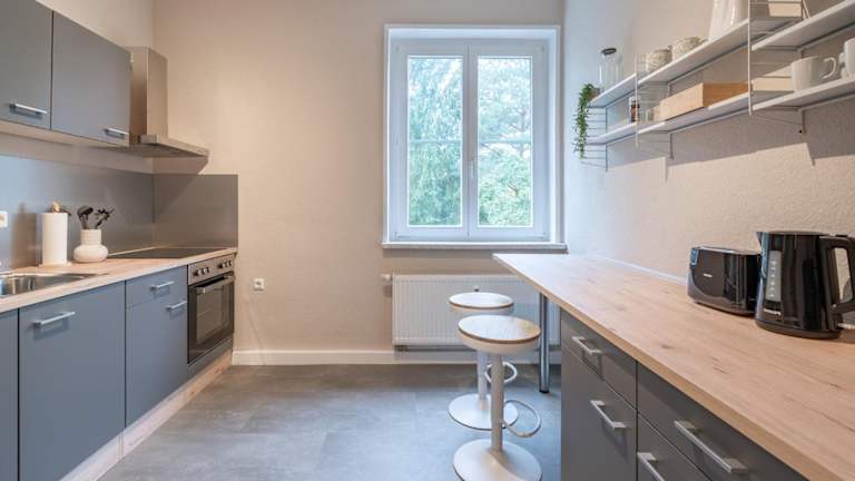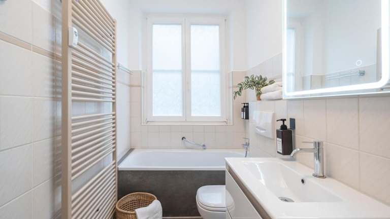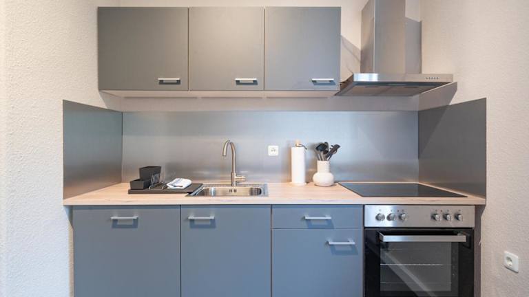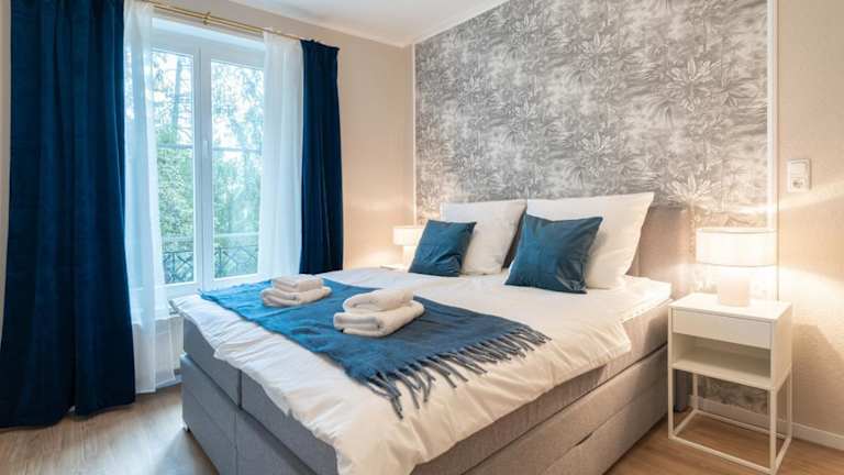 Die Ferienwohnung besteht aus einem Schlafzimmer und einem Wohnzimmer. Es gibt eine voll ausgestattete Küche, die mit einem Kühlschrank und einer Kaffeemaschine ausgestattet ist. Das Badezimmer bietet eine Badewanne und kostenlose Pflegeprodukte. Handtücher und Bettwäsche werden bereitgestellt.
