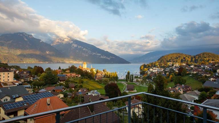 Die Unterkunft befindet sich in Spiez und bietet einen Blick auf die Stadt. In der näheren Umgebung sind zahlreiche Freizeitmöglichkeiten wie Wandern und Skifahren gegeben. Die beliebten Ziele Grindelwald Terminal und Giessbachfälle sind 35 km bzw. 38 km entfernt. Der Flughafen Basel-Mülhausen liegt etwa 139 km von der Unterkunft entfernt.