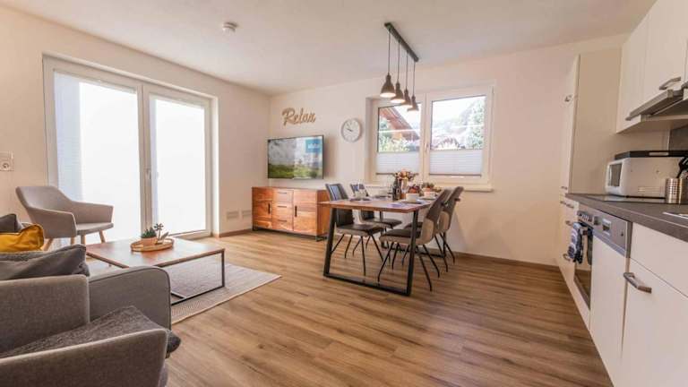 Jede Wohneinheit verfügt über eine voll ausgestattete Küche mit Esstisch, einen Flachbild-TV mit Satellitenkanälen sowie ein eigenes Badezimmer mit Dusche und Haartrockner. Zur Küchenausstattung gehören ein Kühlschrank, Geschirrspüler, Ofen, Kaffeemaschine und Wasserkocher.
