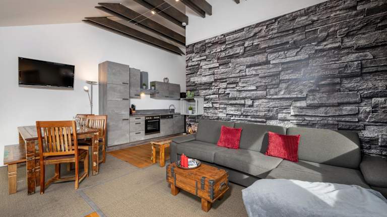 Die Ferienwohnung verfügt über ein Schlafzimmer, ein Wohnzimmer mit Flachbild-TV, eine gut ausgestattete Küche mit Kühlschrank und Geschirrspüler sowie ein Badezimmer mit Dusche. Ein Balkon mit Bergblick ist vorhanden und Handtücher sowie Bettwäsche werden bereitgestellt.
