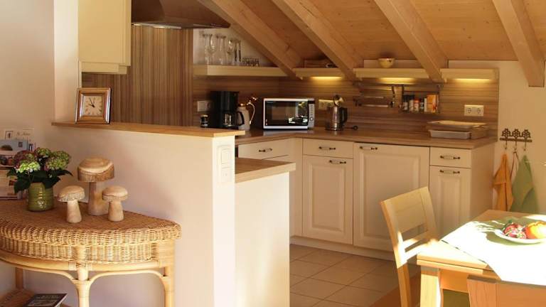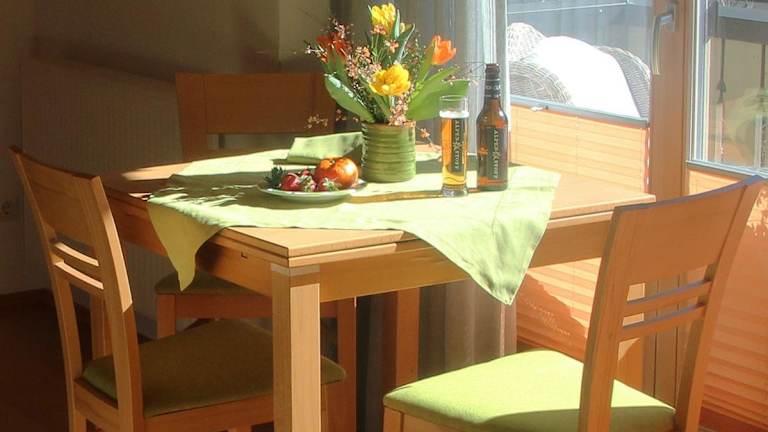 Die Ferienwohnung verfügt über ein Schlafzimmer, ein Badezimmer, Bettwäsche und Handtücher. Zur weiteren Ausstattung gehören ein Flachbild-TV, ein Essbereich und eine voll ausgestattete Küche.