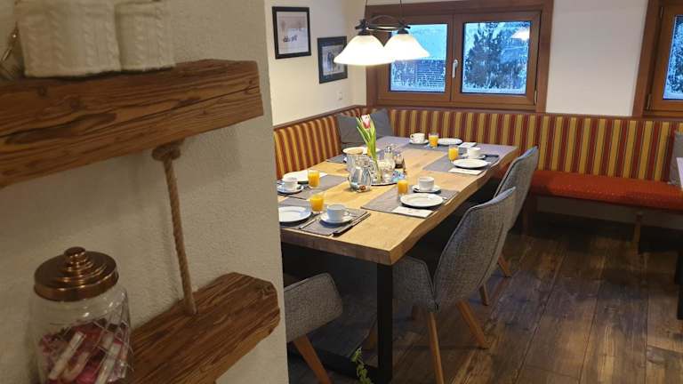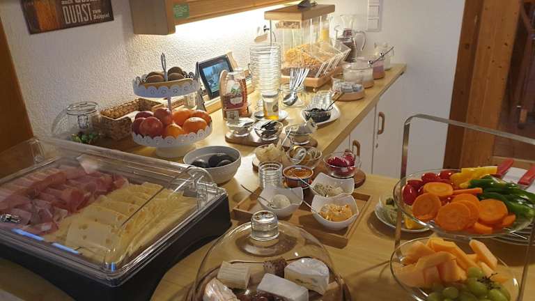 Jeden Morgen wird im Bergführerhaus ein kontinentales Frühstück serviert. Gäste können sich auf eine Auswahl an köstlichen Speisen freuen, um energiegeladen in den Tag zu starten.