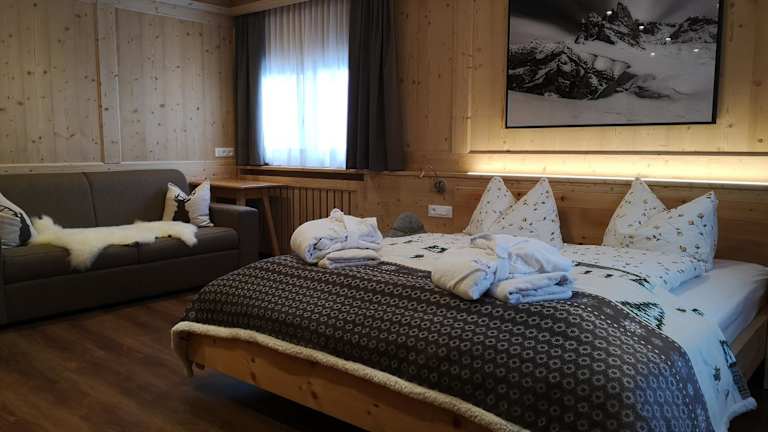 Die Rifugio Fermeda Hütte bietet traditionelle Unterkünfte im alpenländischen Stil. Die Zimmer sind gemütlich und komfortabel eingerichtet und bieten einen erholsamen Rückzugsort nach einem aktiven Tag in den Bergen. Die Hütte verfügt auch über einen Whirlpool, in dem Sie sich entspannen können, sowie eine Sonnenterrasse, auf der Sie die frische Bergluft genießen können.