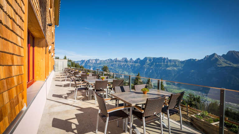 Das Berghotel Schonhalden ist ein wahres Hideaway, das nur mit der Seilbahn erreichbar ist. Es liegt eine 28-minütige Fahrt vom Zentrum von Flums entfernt und bietet Ihnen die Möglichkeit, dem Trubel des Alltags zu entfliehen und die Ruhe und Schönheit der Berge zu genießen. Von der Terrasse aus können Sie einen beeindruckenden Blick auf die umliegende Landschaft genießen.