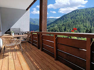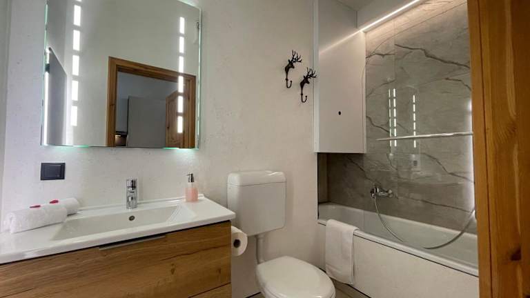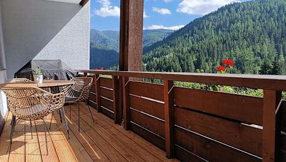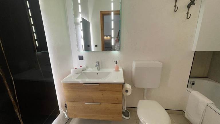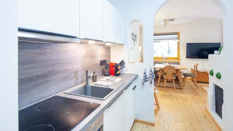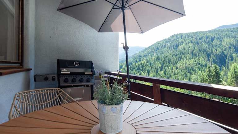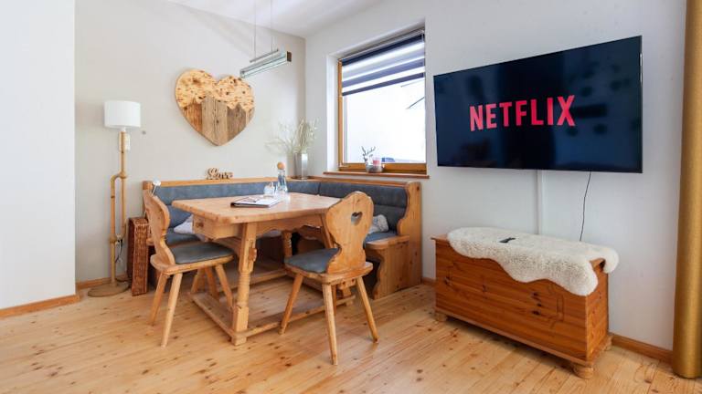 Die Ferienwohnung verfügt über ein Schlafzimmer, ein Wohnzimmer, einen Balkon mit Bergblick, einen Flachbild-TV und eine gut ausgestattete Küche mit Kühlschrank und Geschirrspüler. Ein Badezimmer mit Badewanne ist ebenfalls vorhanden. Handtücher und Bettwäsche werden zur Verfügung gestellt.